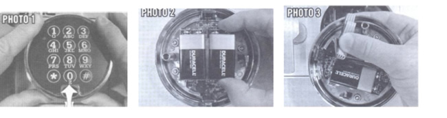 Recomendamos DURACELL. Si las baterías de su cerradura necesitan ser repuestas, la cerradura emitirá un sonido muy notorio cuando alguna tecla sea oprimida. Esto continuará hasta que las baterías sean cambiadas. Una vez que el modelo 6120 indique la necesidad de baterías nuevas, abrirá varias veces con estas baterías viejas.
