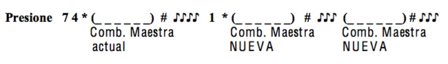 Todo procedimiento de cambio empieza oprimiendo 7 4 * seguido por la combinación maestra de 6 dígitos existentes, y #. Si inmediatamente después de oprimir #, la cerradura emite una serie de sonidos con pausas cortas (como un tono continuo), usted ha cometido un error y deberá volver a empezar.